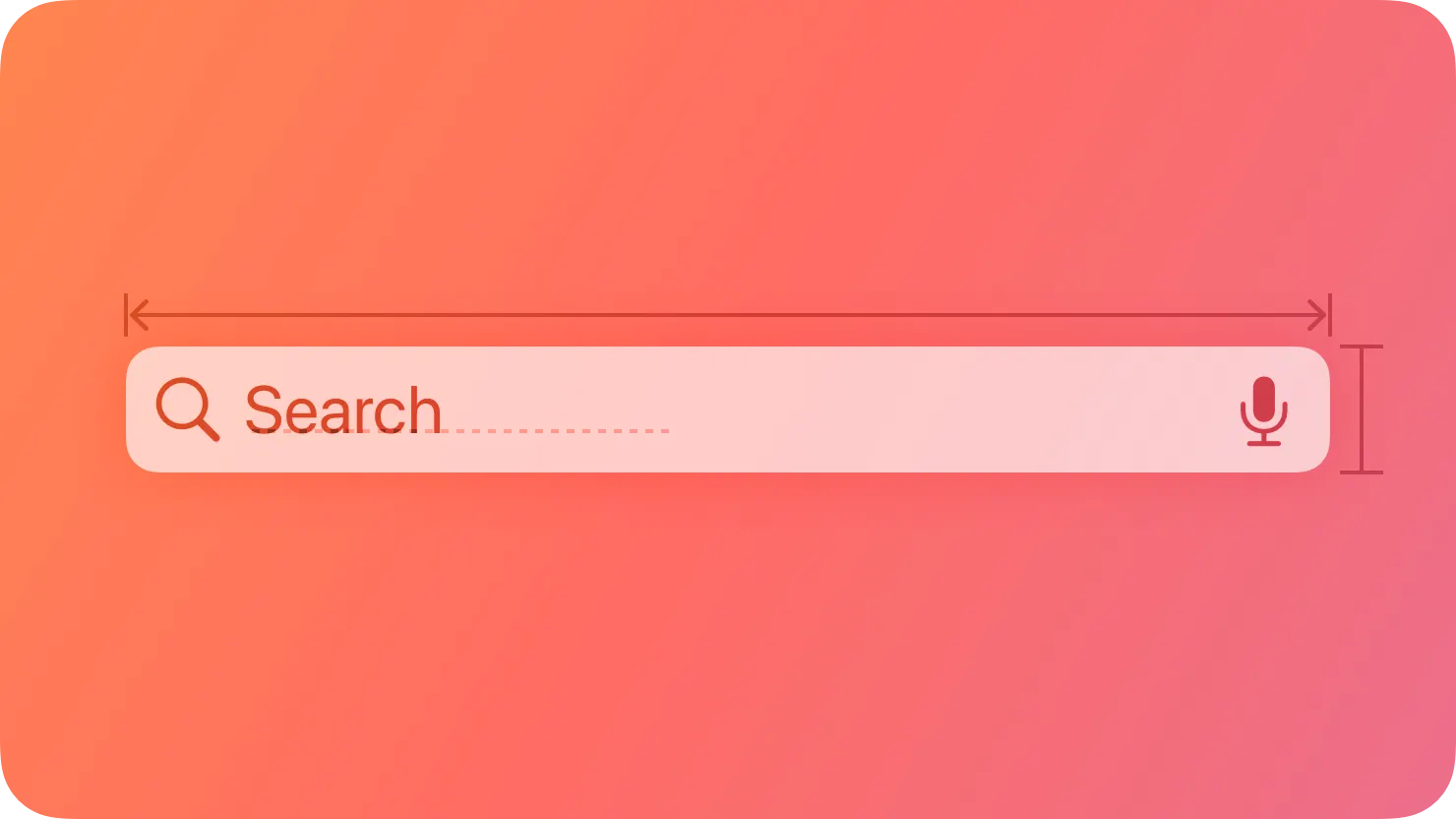 검색 필드는 편집 가능한 텍스트 필드로, 일반적으로 검색 버튼, Clear 버튼 및 선택적인 플레이스홀더 텍스트를 표시합니다. 플랫폼에 따라 검색 텍스트 필드는 사람들이 입력하는 검색 용어를 나타내는 토큰 또는 앱에서 정의한 아이템을 필터로 사용할 수 있습니다. 토큰은 용어나 항목을 묶어 표현하는 시각적 처리를 사용하여 사람들이 텍스트를 선택하지 않고도 토큰을 복사하거나 드래그할 수 있다는 것을 나타냅니다. macOS의 토큰 예시에 대한 자세한 내용은 토큰 필드를 참조하십시오.