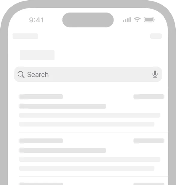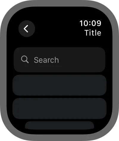 iOS, iPadOS 및 watchOS에서 list를 검색 가능하게 만들면 시스템은 사람이 아래로 스와이프하여 표시할 때까지 검색 필드를 툴바 아래에 숨깁니다. 개발자 안내에 대해서는 searchable(text:placement:prompt:)를 참조하십시오.