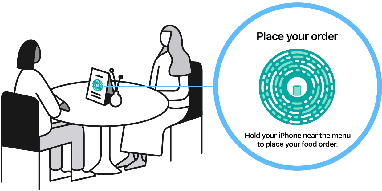 A restaurant could let diners pay for a meal by launching an App Clip from the Maps app or a suggestion from Siri Suggestions, or by holding their device close to an App Clip Code or NFC tag at their table.