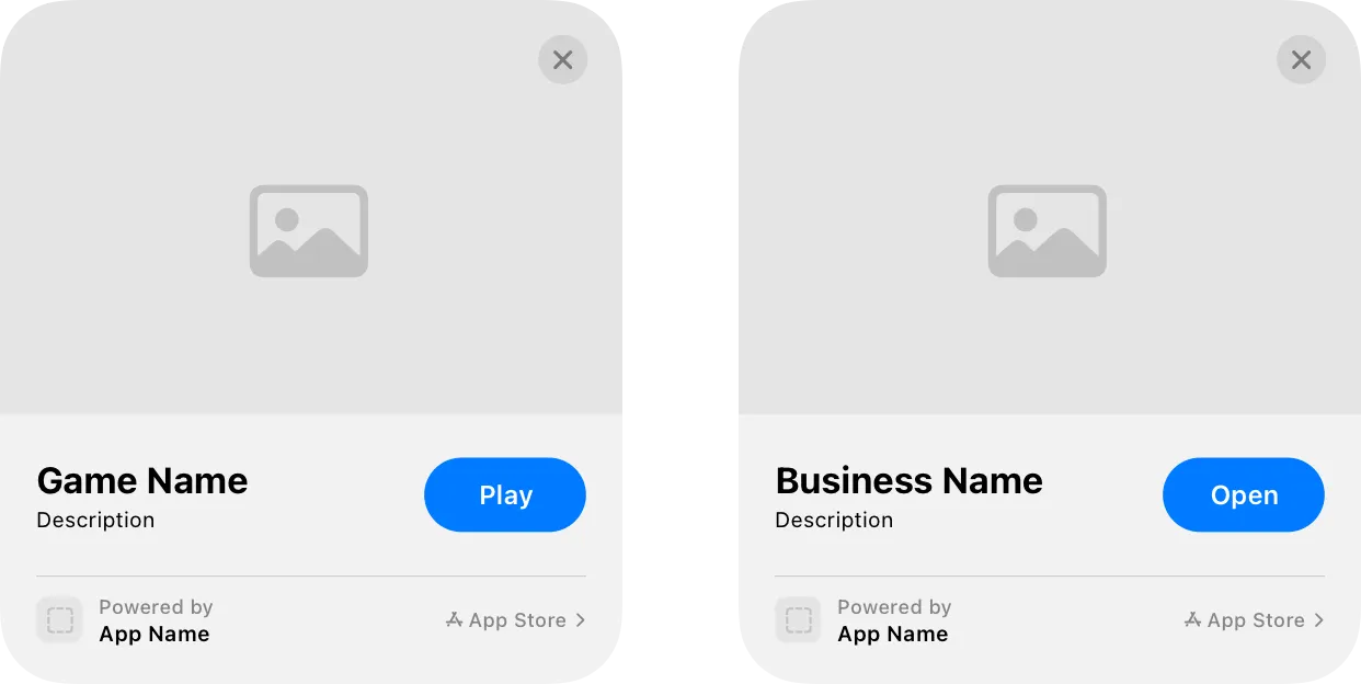 On their device, people launch an App Clip from location-based suggestions they permit in Siri Suggestions, the Maps app, Smart App Banners on websites, App Clip cards in Safari, and by tapping links others share with them in the Messages app. Starting with iOS 17, an app can include links and App Clip previews that people tap to launch another app’s App Clip.