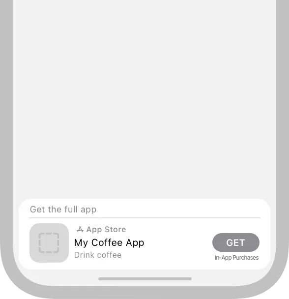 When people first launch the App Clip, the system displays an app banner at the top of the screen. Like the App Clip card, the banner allows people to visit the app’s page on the App Store.
