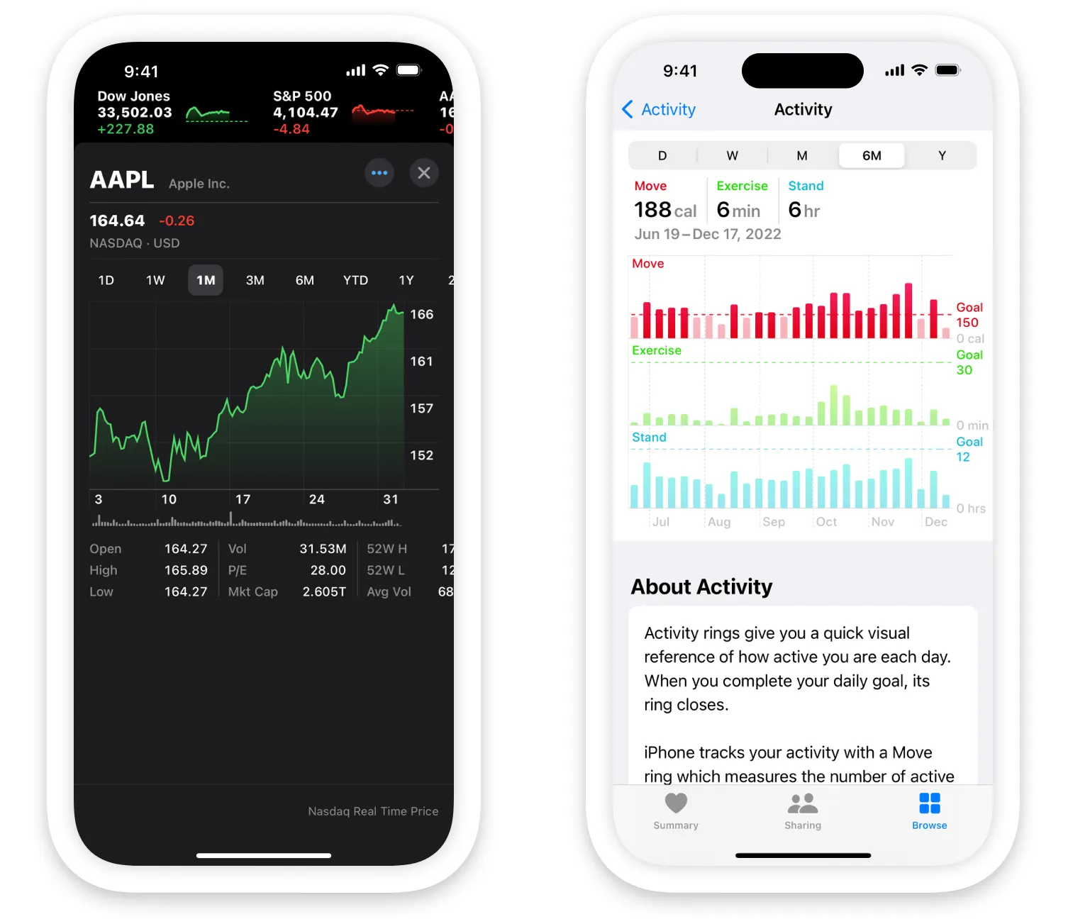 If you need to create a chart that presents data in a novel way, help people learn how to interpret the chart. For example, when a Watch pairs with iPhone, Activity introduces the Activity rings by animating them individually, showing people how each ring maps to the move, exercise, and stand metrics.