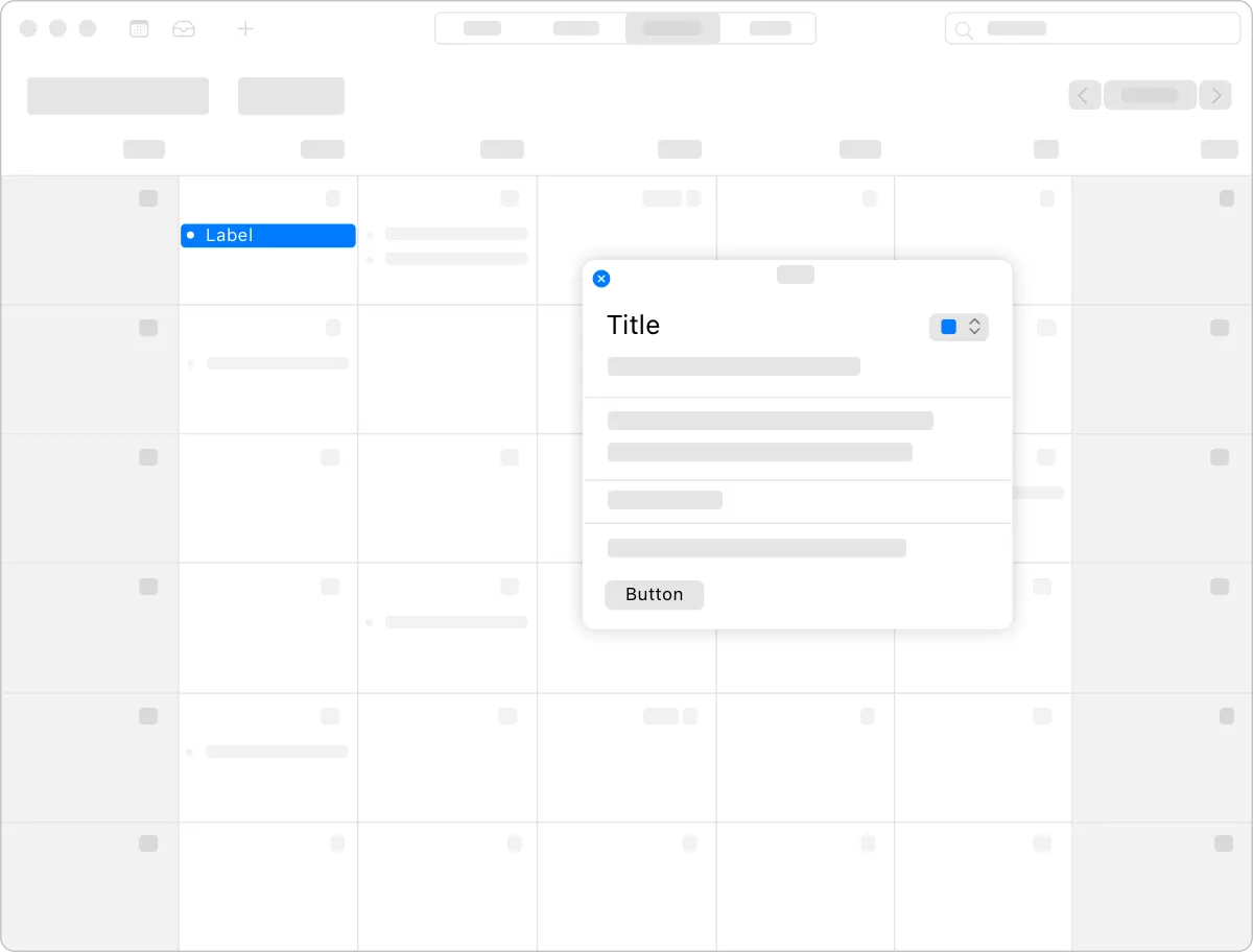 Use a popover to expose a small amount of information or functionality. Because a popover disappears after people interact with it, limit the amount of functionality in the popover to a few related tasks. For example, a calendar event popover makes it easy for people to change the date or time of an event, or to move it to another calendar. The popover disappears after the change, letting people continue reviewing the events on their calendar.