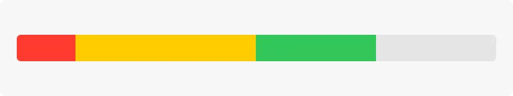 범위의 중요한 부분을 사람들에게 알리려면 채우기 색상을 변경하는 것이 좋습니다. 기본적으로 두 용량 표시기 스타일의 채우기 색상은 녹색입니다. 앱에 적합한 경우 현재 값이 매우 낮음, 매우 높음 또는 중간을 지나는 등 특정 수준에 도달하면 채우기 색상을 변경할 수 있습니다. 아래 표시된 것처럼 전체 표시기의 채우기 색상을 변경하거나 계층화된 상태를 사용하여 하나의 표시기에 여러 색상의 시퀀스를 표시할 수 있습니다.