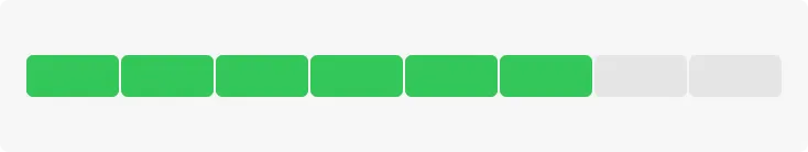 Discrete. A horizontal row of separate, equally sized, rectangular segments. The number of segments matches the total capacity, and the segments fill completely — never partially — with color to indicate the current value.