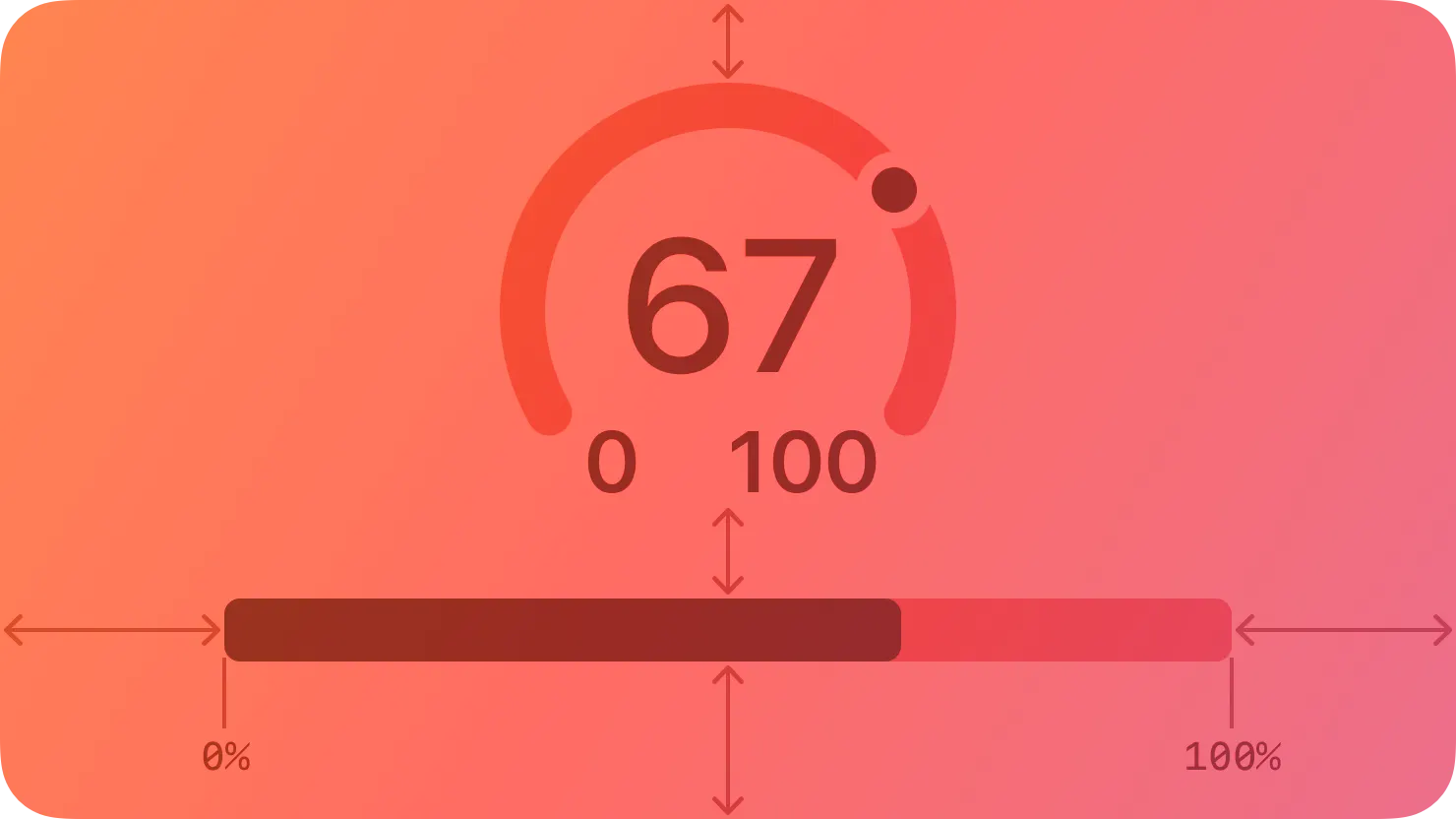 현재 값과 범위의 두 끝점을 설명하는 간결한 레이블을 작성합니다. 모든 게이지 스타일이 모든 레이블을 표시하는 것은 아니지만 VoiceOver는 표시되는 레이블을 읽어서 사용자가 설명 없이 게이지를 이해할 수 있도록 돕습니다. 화면을 보고 있어요.