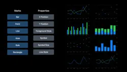 Choose a mark type based on the information you want to communicate about the data. Some of the most familiar mark types are bar, line, and point; for developer guidance on these and other mark types, see Swift Charts.