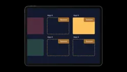 iPadOS는 다양한 방법으로 멀티태스킹 윈도우를 제공할 수 있으며, 다양한 워크플로우를 지원합니다. 사용자들이 멀티태스킹 구성을 바꿀 수 있는 멀티태스킹 컨트롤도 지원하며, app shelf는 앱의 모든 윈도우를 보여줍니다.