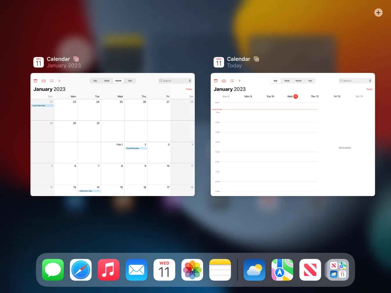 달력 앱은 한 번에 여러 창을 열 수 있습니다.