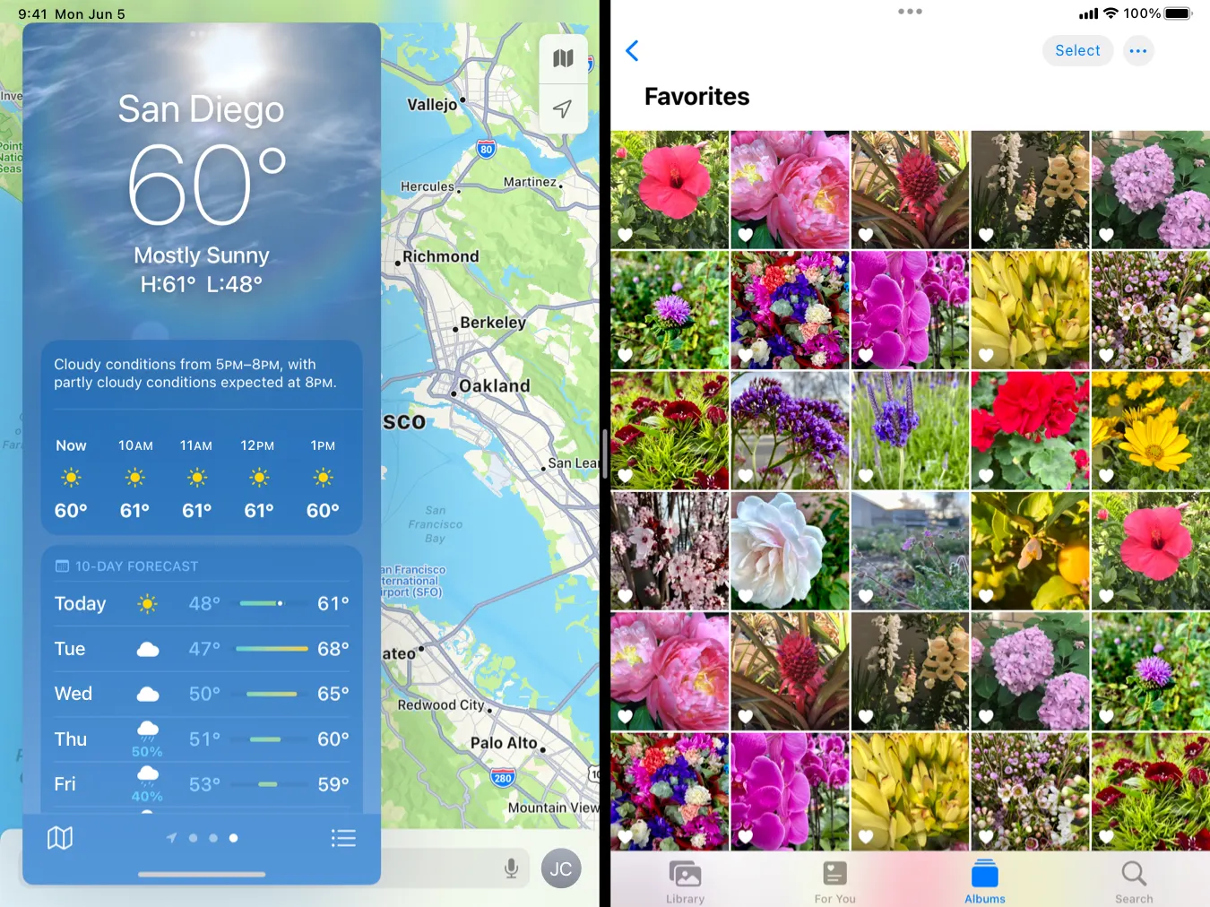 With multitasking, windows from several apps — like Weather, Maps, and Photos — can be available onscreen at the same time.