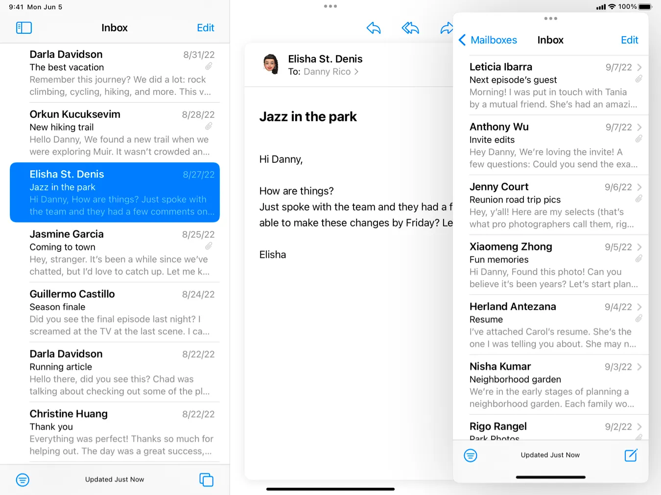 Mail uses a primary window to present all mailboxes and message lists.