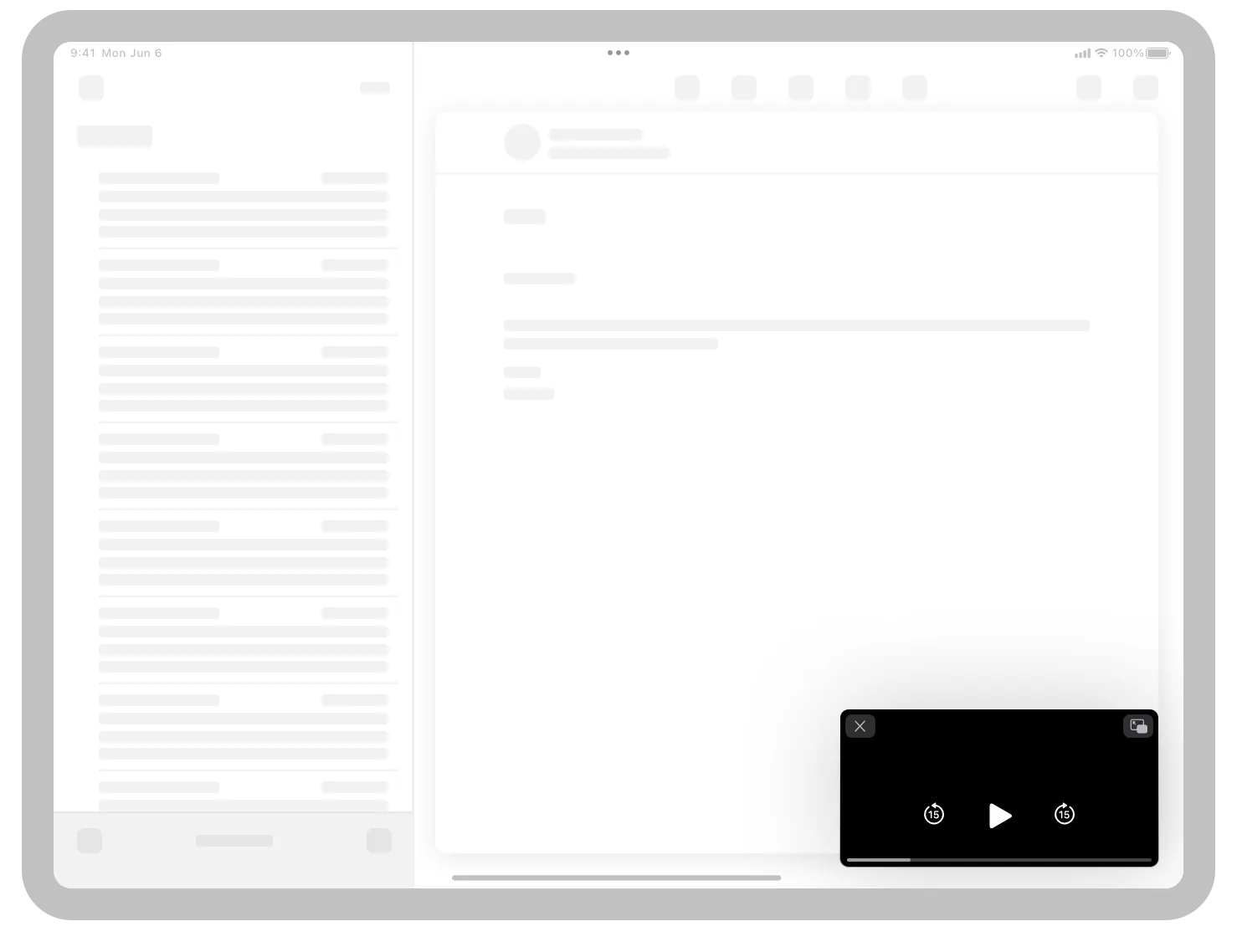 Picture in Picture opens a video in a movable, resizable window that floats above the full-screen app.