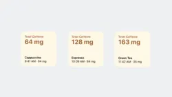 → 위젯은 앱을 실행하지 않고도 추가 기능을 제공하며 사용자의 일일 카페인 섭취량 등을 기록하는 데 도움이 됩니다.
