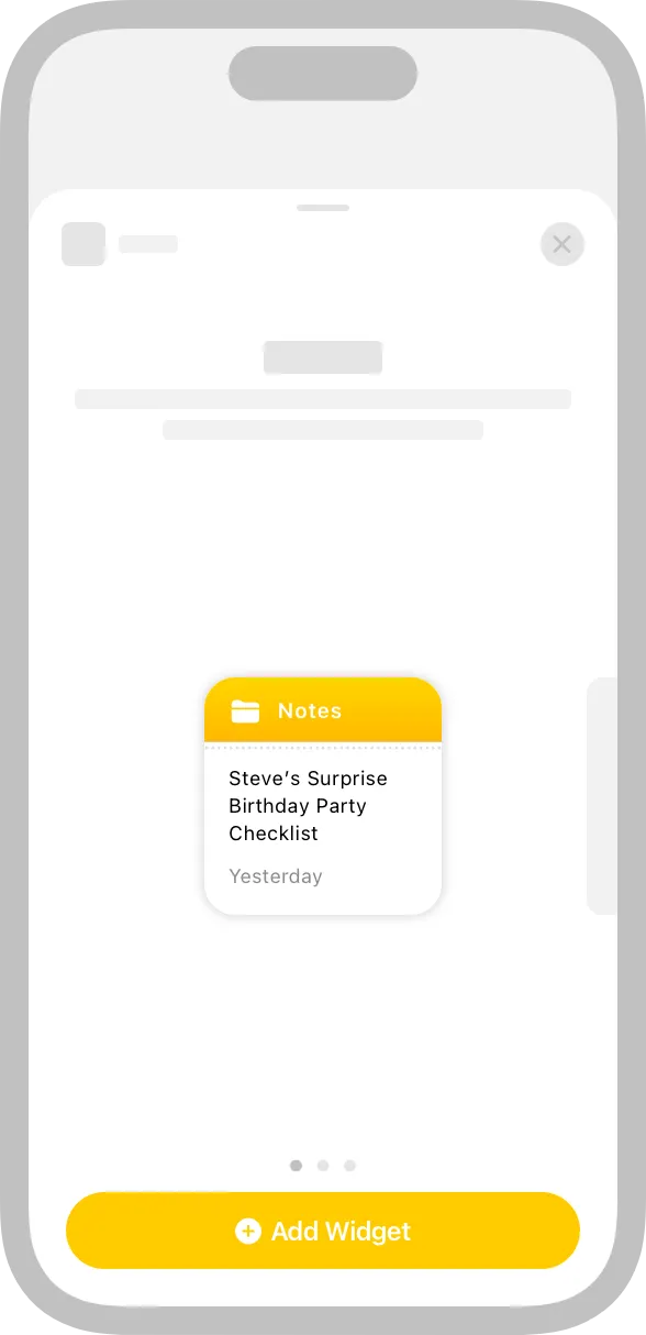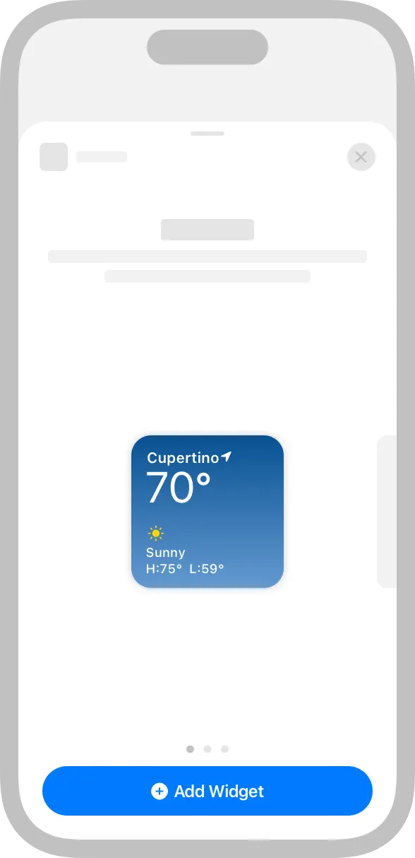 Design placeholder content that helps people recognize your widget. An installed widget displays placeholder content while its data loads. You can create an effective placeholder appearance by combining static interface components with semi-opaque shapes that stand in for dynamic content. For example, you can use rectangles of different widths to suggest lines of text, and circles or squares in place of glyphs and images.