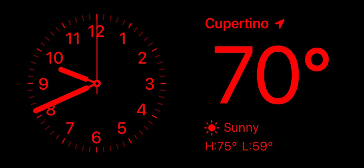 In Night Mode, the system applies a red tint to widgets.