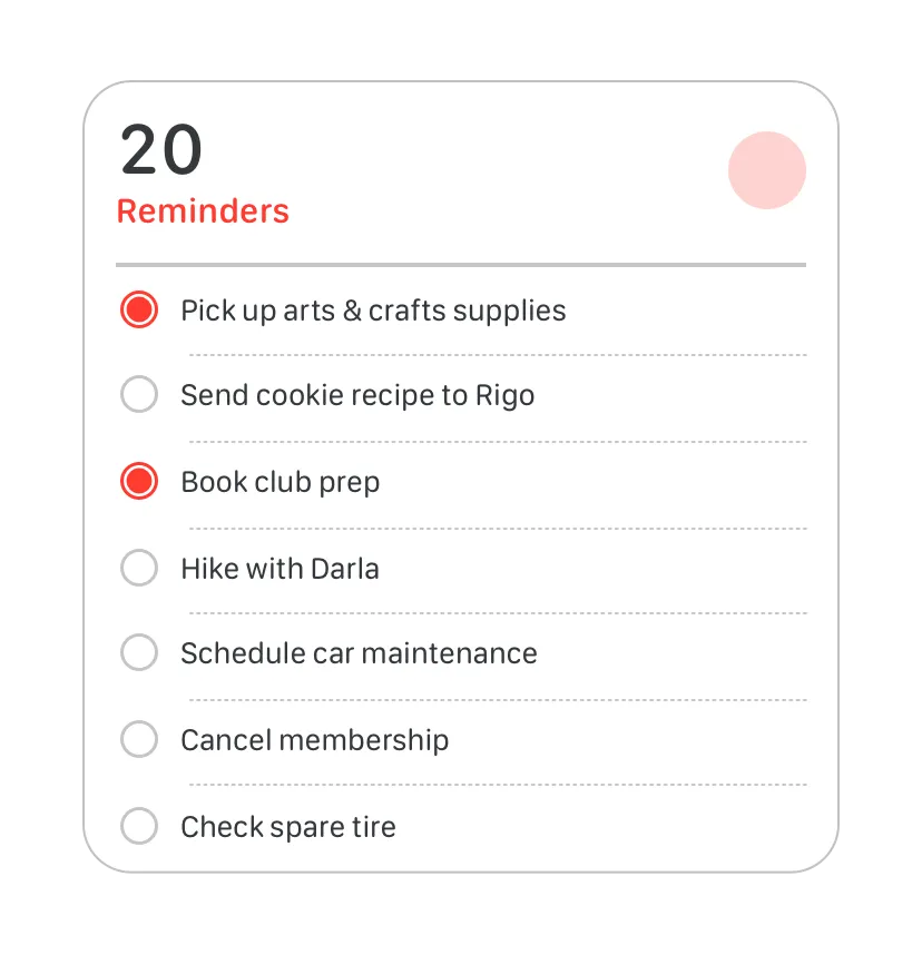 People tap or click a widget to launch its corresponding app. Starting with iOS 17, iPadOS 17, and macOS 14, widgets can also include buttons and toggles to offer additional functionality without launching the app. For example, the Reminders widget helps people mark a task as completed, and the widget of an app people use to log their daily caffeine intake could include a button that increases the caffeine total for the day.