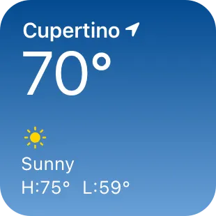 Look for a simple idea that’s clearly related to your app’s main purpose. The first step in the design process is to choose a single idea for your widget. Throughout the process, use that idea to help you include only the most relevant content and functionality in the widget. For example, people who use the Weather app are often most interested in the current high and low temperatures and weather conditions, so the widget for Weather prioritizes this information.