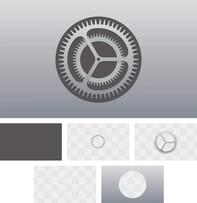In non-background layers, prefer well-defined edges between distinct regions that are either fully opaque or transparent pixels. The system-drawn highlights and shadows look best when non-background layers contain shapes that have clearly defined edges. Avoid using soft or feathered edges.