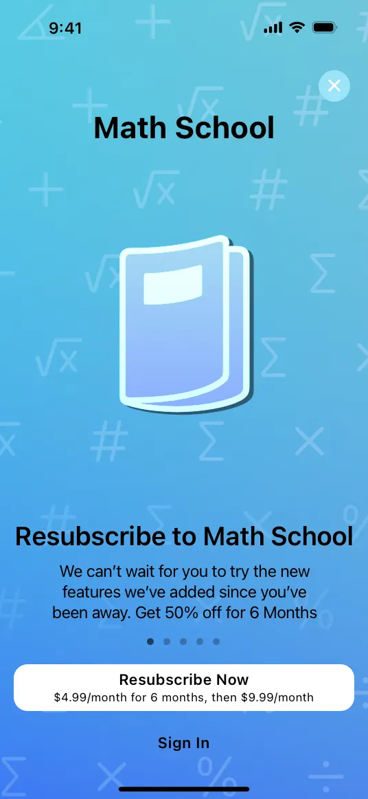 Consider ways to encourage a subscriber to keep their subscription or resubscribe later.When you use StoreKit APIs, your app is notified when someone chooses to cancel their subscription. In this scenario, you might want to extend a personalized offer as an alternative to cancellation or invite people to describe their reasons for canceling in an exit survey. In addition to giving you insights into various customer problems, survey feedback can also help inform messaging for retention and win-back strategies.