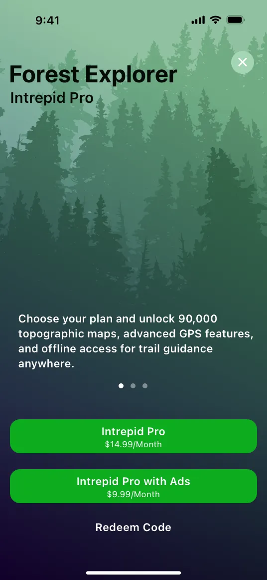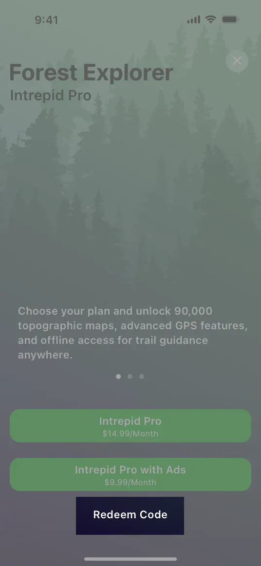 For example, the Forest Explorer sign-up screen displays billing totals for monthly, biannual, and annual subscriptions in the most prominent positions. In subordinate positions, it shows breakdowns of the biannual and annual prices, so that people can compare the values and make an informed choice. The sign-up screen also contains a button that existing subscribers can use to restore their purchases.