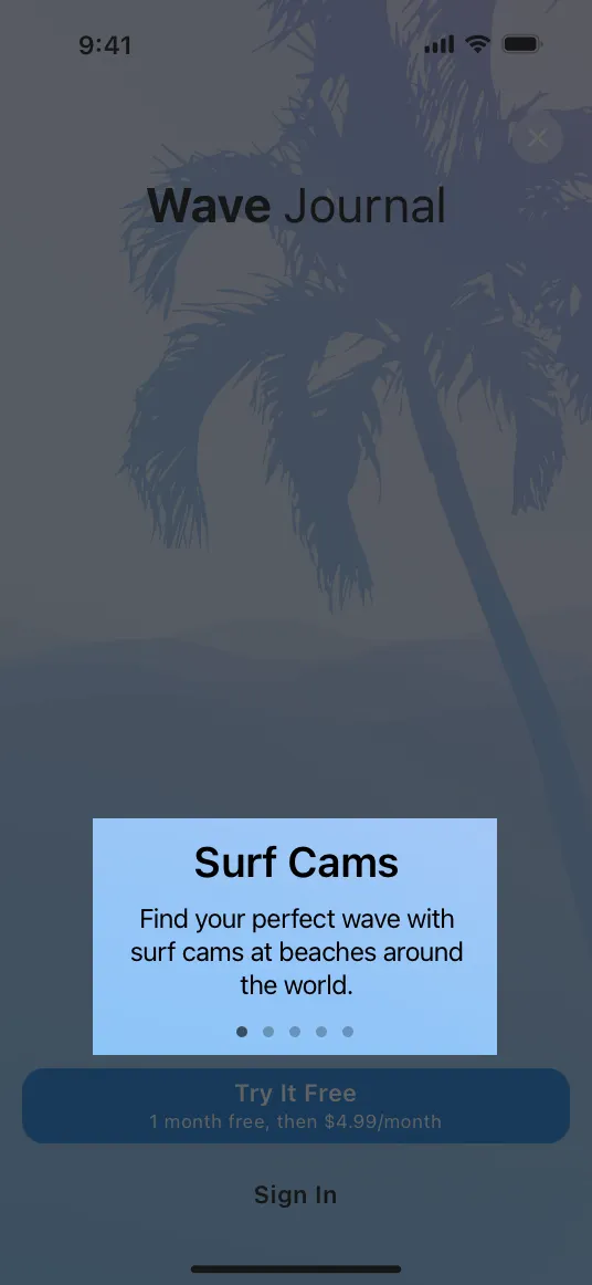 Call attention to subscription benefits during onboarding. By showing the value of your subscription when people first launch your app, you can educate them on how the app works and help them understand what they’ll gain by subscribing. Include a strong call to action and a clear summary of subscription terms (see Making signup effortless). For related guidance, see Onboarding.