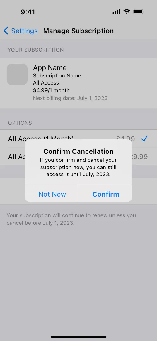 Always make it easy for customers to cancel an auto-renewable subscription. If the manage subscription action is deep within an app — or hard to recognize — subscribers can feel they’re being discouraged or prevented from canceling.